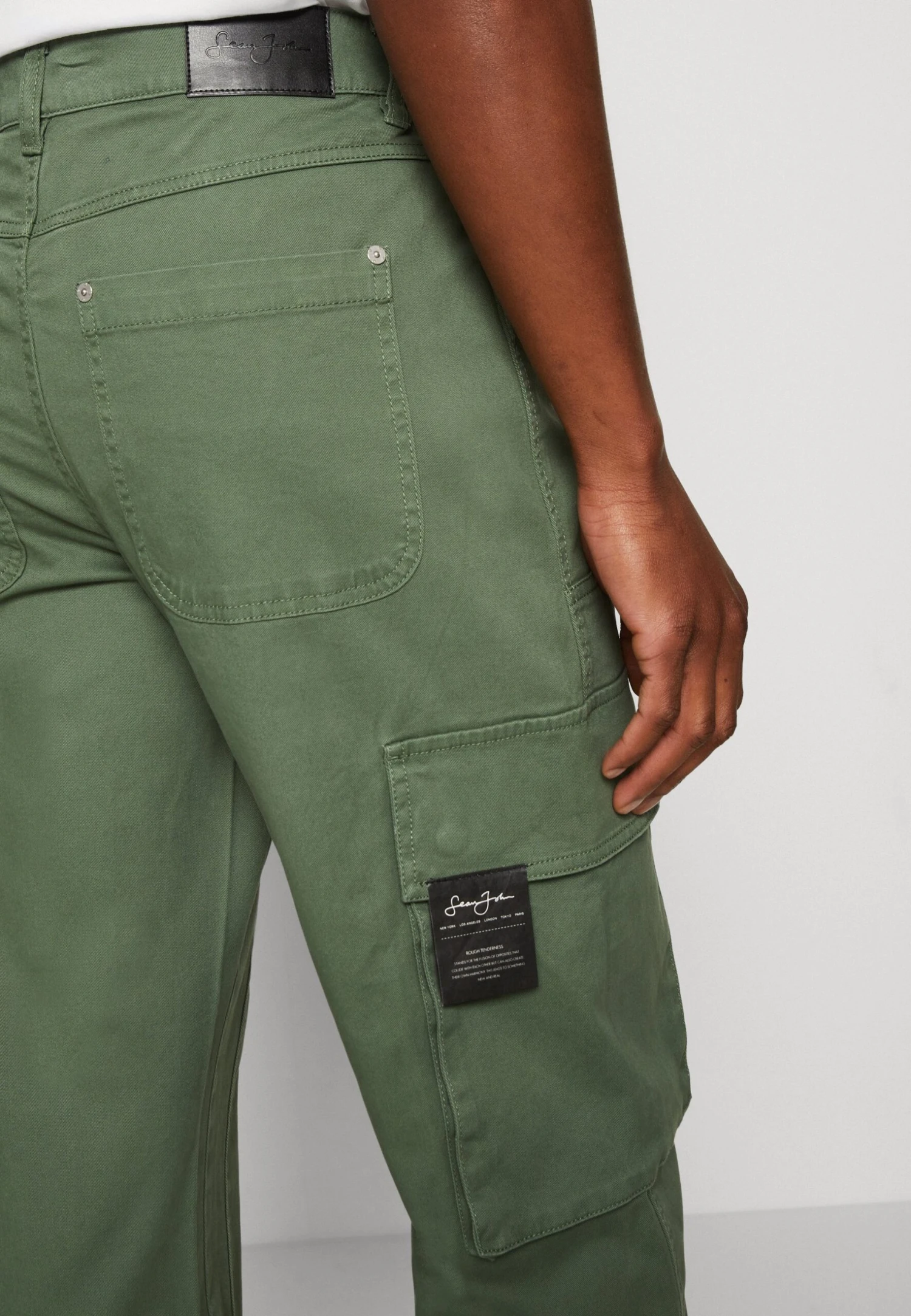 Sean John Script Logo Knee Patch – Pantalones Cargo – Olive