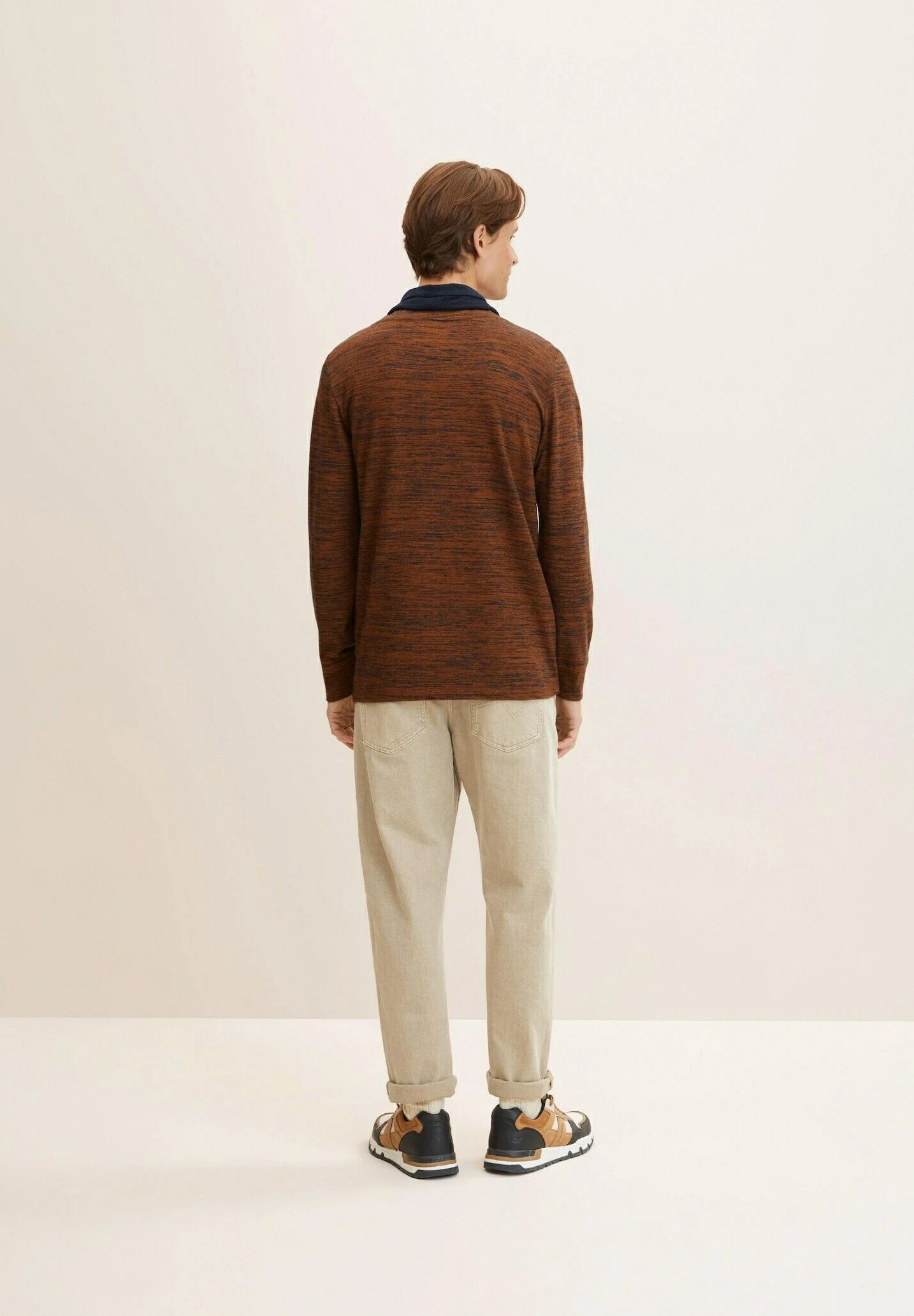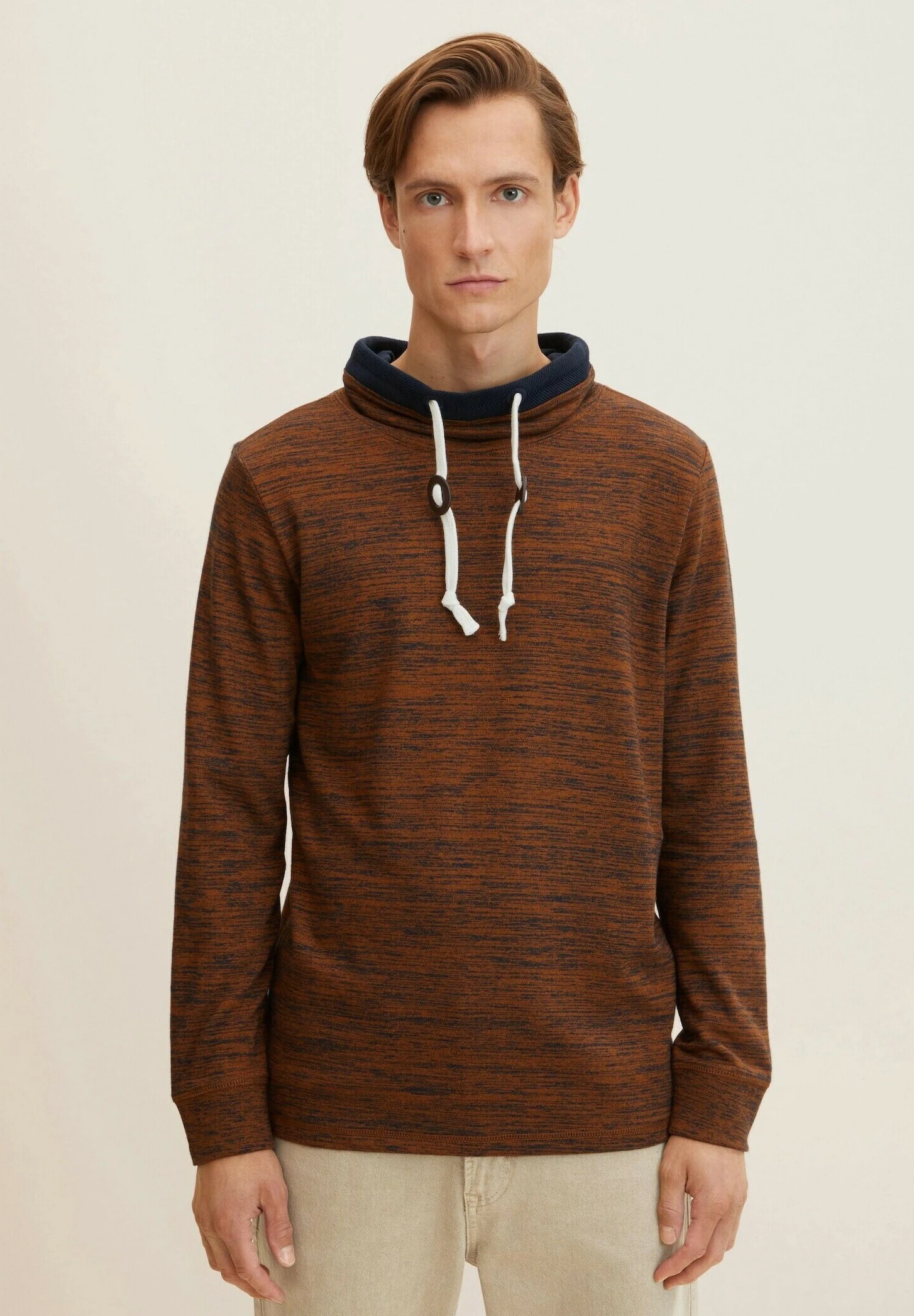 Tom Tailor Langarm – Camiseta De Manga Larga – Equestrian Brown Navy Slub